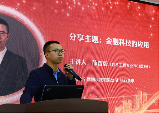 学科交叉,全面发展。来自2002级的薛曾毅学长以《金融科技应用》为主题,向同学们详细介绍了银行零售信贷领域与当前计算机学科的紧密联系,让同学们对金融学科和计算机相融合的经济发展有了深入的了解。他勉励大家:当下计算机学科已进入社会的诸多领域,同学们要扩展自己的知识面,提升自己的专业技能和素养。