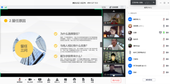 本次线上面试由各部门优秀干事自行制作PPT,分别从个人介绍,工作经历,个人优势,未来期望等方面展示自己,全面考察团委、学生会成员对学院和团委、学生会的了解情况以及是否掌握完成各项事务的基本能力。每位参与面试的干事都是自信满满,有备而来,面对主席们的提问更是对答如流,头头是道地诉说着自己在部门一年的经历和经验,以及如何在之后的工作中发光发热,将自己热爱的部门建设的更好。最后,主席团代表学院向大家传达了学生干部应有的风貌和责任,鼓励我院团委、学生会注入更多新鲜血液,希望各部门成员能够不忘初心、砥砺前行,为努力建设好英国威廉集团官网团委、学生会而奋斗。