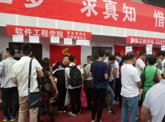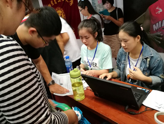 迎新工作在9月7号上午正式拉开帷幕,一大早迎新的同学们便满怀热情的聚集在摆点处,准备迎接新生的到来。8号上午7点,工作人员便在体育馆为新生注册做好了充分的准备,确保所有新生能顺利的报到注册。热情的微笑,耐心的讲解,细致的引导——这就是迎新队伍的标签。迎新的同学认真的为新生办理每一项入学手续,并为他们提供各种咨询,解答家长提出的种种问题,直到他们脸上露出会心的笑容。还有我们十分辛苦的志愿者穿梭于迎新现场,时刻等待着为新同学伸出援手,帮他们提行李,给他们带路。