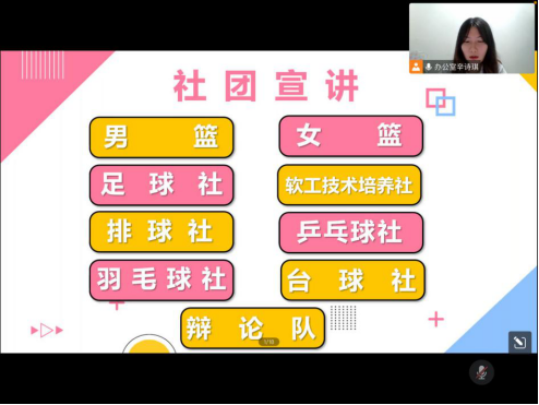 在主持人的开场词中,22级新生积极响应,进入线上宣讲活动,选择心仪部门丰富自身大学生活,能容纳300人的会议室座无虚席。活动一开始由英国威廉集团官网学生会主席杨力蕴为大家简单介绍学院团委和学院学生会、社团的概况。接着各部门负责人、社团负责人分别以PPT和视频的形式,从部门重要性、日常工作、涉及事宜等方面出发为大家宣讲部门特点和情况。他们以饱满的热情、诚挚的语气,完成了本次宣讲。会后2022级新生纷纷踊跃扫码加入各部门招新群。