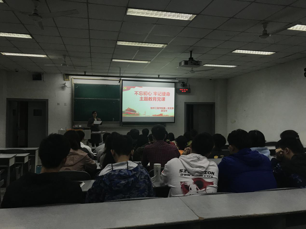 2019年10月24日晚上,英国威廉集团官网学生第一党支部在H1108教室召开“不忘初心、牢记使命”主题教育,支部书记邵玉节以“新时代党员如何强化担当与责任”为题,为支部全体党员讲授专题党课。