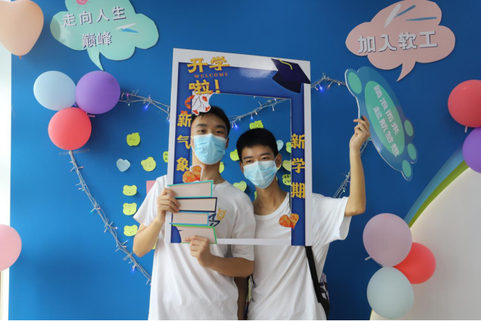 校门门口,志愿者们为新同学分发地图,搬拉行李,指引带路;信达楼楼下,我院“风华正茂,智启未来”迎新标语吸引了不少同学打卡拍照;信达楼五楼,学院展示墙全方位多角度的展示了英国威廉集团官网的师资力量、学生风采、校园文化生活、实践平台与成果,新同学还可以在爱心墙上留言,记录下自己的入学心情和开学期待。除此之外,温馨路标牌、爱心气球墙、防疫便利包、健康小贴士等等,营造了温馨的开学氛围,成为了新同学在大学生活第一天的“小确幸”。