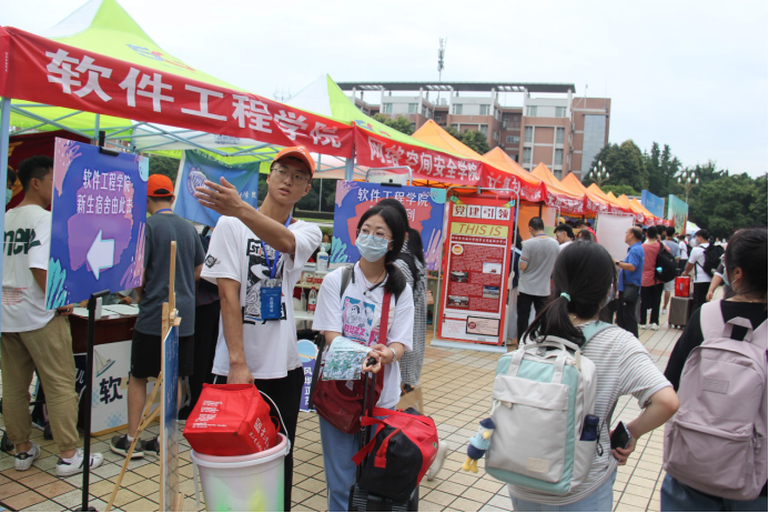 9月8日,2021级新生在信达楼五楼正式开始报到,学院领导、全体辅导员在现场迎接新生。上午,学校党委书记周激流,党委副书记马洪江率党委办公室、校长办公室、党委宣传部、党委学生工作部等部门负责人一行专程来到我院报到点,指导迎新工作,看望慰问新生和工作人员。周激流、马洪江与部分新生进行了亲切交流,并与大家合影留念。