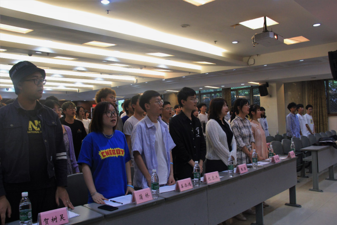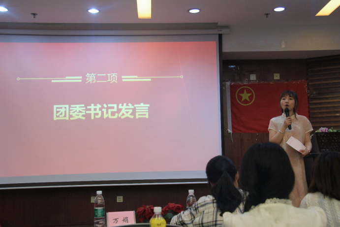 会议开始,在场所有人员齐唱团歌;团委书记万娟老师对团委、学生会本年度工作进行了总结并表示了肯定,万老师告诉大家应当把团委、学生会当做一个大家庭,我们各自贡献的自己地力量把这个大家庭的各项工作做好、团结大家让所有人看到我院蒸蒸日上的成绩,并向大家介绍了下一届团委书记和团委副书记胡培和张澄老师。到场嘉宾胡培和张澄老师表达了对团委、学生会未来的展望,希望他在加入我们团委、学生会的大家庭后能带领大家更好的完成各项工作。学生会主席团代表贺树昊也发言,他讲述了自己在团委、学生会的工作和成长经历,也表达了对志愿者们的期望。