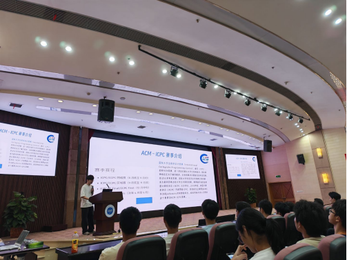 在经验分享环节,优秀队员代表刘雨葳结合自身成长经历,讲述了从零基础到屡获佳绩的奋斗历程。他以一次ICPC区域赛为例,生动再现了他们那支名为“帝企鹅”的参赛队伍在比赛中通过合理分工、协同作战,最终取得优异成绩的过程。这一案例充分展现了团队协作的真谛在于优势互补、共同攻坚,也为新生提供了可借鉴的学习路径与方法。