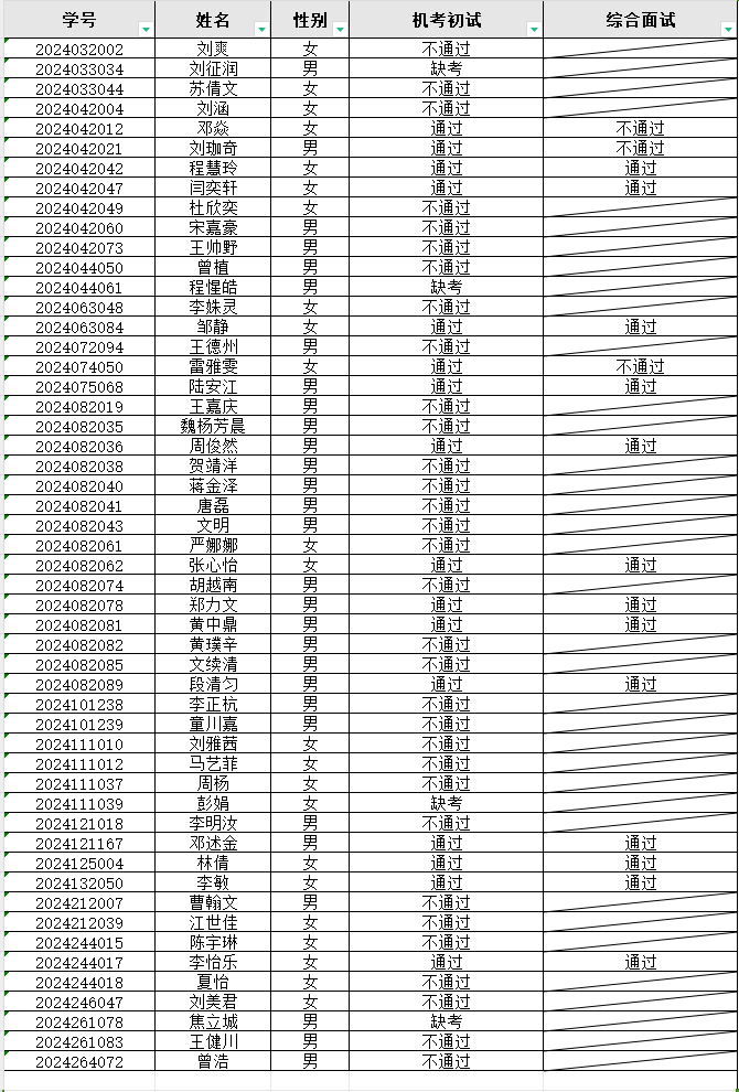 根据《英国威廉集团官网2024级转专业实施细则》,现将“机考初试、综合面试”两个环节考核情况公示如下。