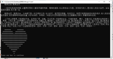 编写代码活动既体现我们学院特色,同时又激发同学们创新思维和想象力,让软件也赋予生命的意义。通过代码的形式来呈现出一个一个感人的字符,表达了敬畏生命的主题同时也体现了代码并非是没有生命符号,而是我们双手敲打创造出来的另一种值得尊敬的生命,